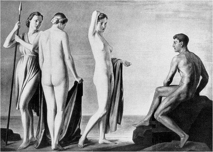 Beginning with 1935, hundreds of works of the avant-garde art was held captive by the Nazis so that they could be exhibited in the “degenerate art” exhibition, in order to show how art was really degenerate at the hands of those avant-gardists and modernists. The tension between the surrealists, Dadaists, abstract artists, expressionists and Adolf Hitler has already arisen when Hitler called those artists of modernist movement as “fools, liars, or criminals who belong in insane asylums or prisons.” Just right after Hitler ordered his officials to prepare an exhibition in Munich which would present the works of “true German art”. A 1937 painting by Adolf Ziegler might give us a hint on what “true German art” is.