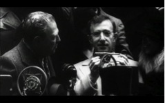 “Chameleon cured by woman doctor!” wrote the papers right before Zelig was gifted with the symbolic keys of New York City. During psychotherapy, Dr. Fletcher had acted like Leonard Zelig himself, and consequently, Zelig had to face and transform his identity into himself and thus have fallen into an emptiness of character. Later on, through psychoanalytical transference, Zelig develops his own opinions on life; first thing he states is that he wants to have sex with Dr. Fletcher. As time goes on, in spite of his “normalization”, Zelig didn’t lose any of his popularity. He sold his life story to Hollywood where he hangs out with celebrities such as William Hearst, Marie Dressler, Marion Davies, Charlie Chaplin, Jimmy Walker, Adolphe Menjeu, Claire Winsdor, Dolores del Rio, James Cagney, Carole Lombard and Bobby Jones. Meanwhile, Zelig’s advice to youth regarding self respect is meaningful, says Prof. John Blum. According to him, for American people, Zelig was a symbol of self-improvement in Great Depression, to which Susan Sontag agrees. Controversial events take place right before Zelig and Dr. Fletcher arrange their marriage. Several women from all over U.S announce that they have children whose missing father is Zelig and who left right after they have affairs. Later Zelig becomes, not a prototype of ideal citizen but a criminal; who gets charged for every unsolved crimes happened all over the country, including bigamy, adultery, automobile accidents, plagiarism, household damages, performing unnecessary dental extractions. Afterwards, Zelig is reported to have transformed into Greek while dining in a Greek restaurant. Subsequently he gets missing, and some months later, he is spotted as a deputy among Adolf Hitler’s leading officers. At this point in documentary, Saul Bellow states that fascism offered Zelig a kind of opportunity which would enable him to make something anonymous to himself by belonging to this vast movement.